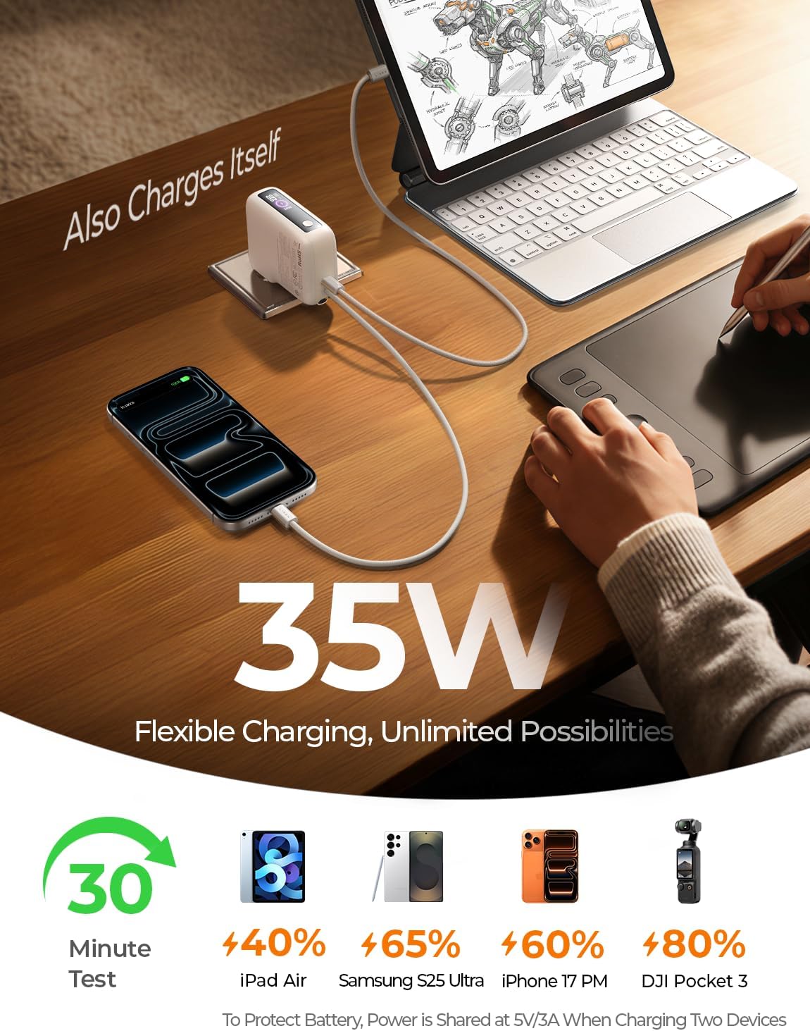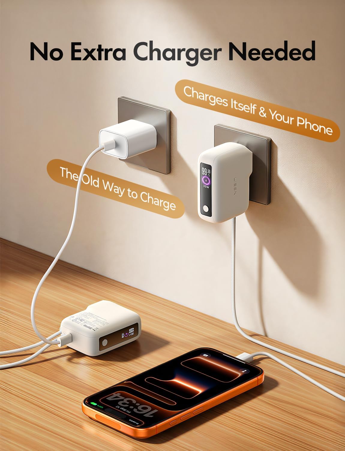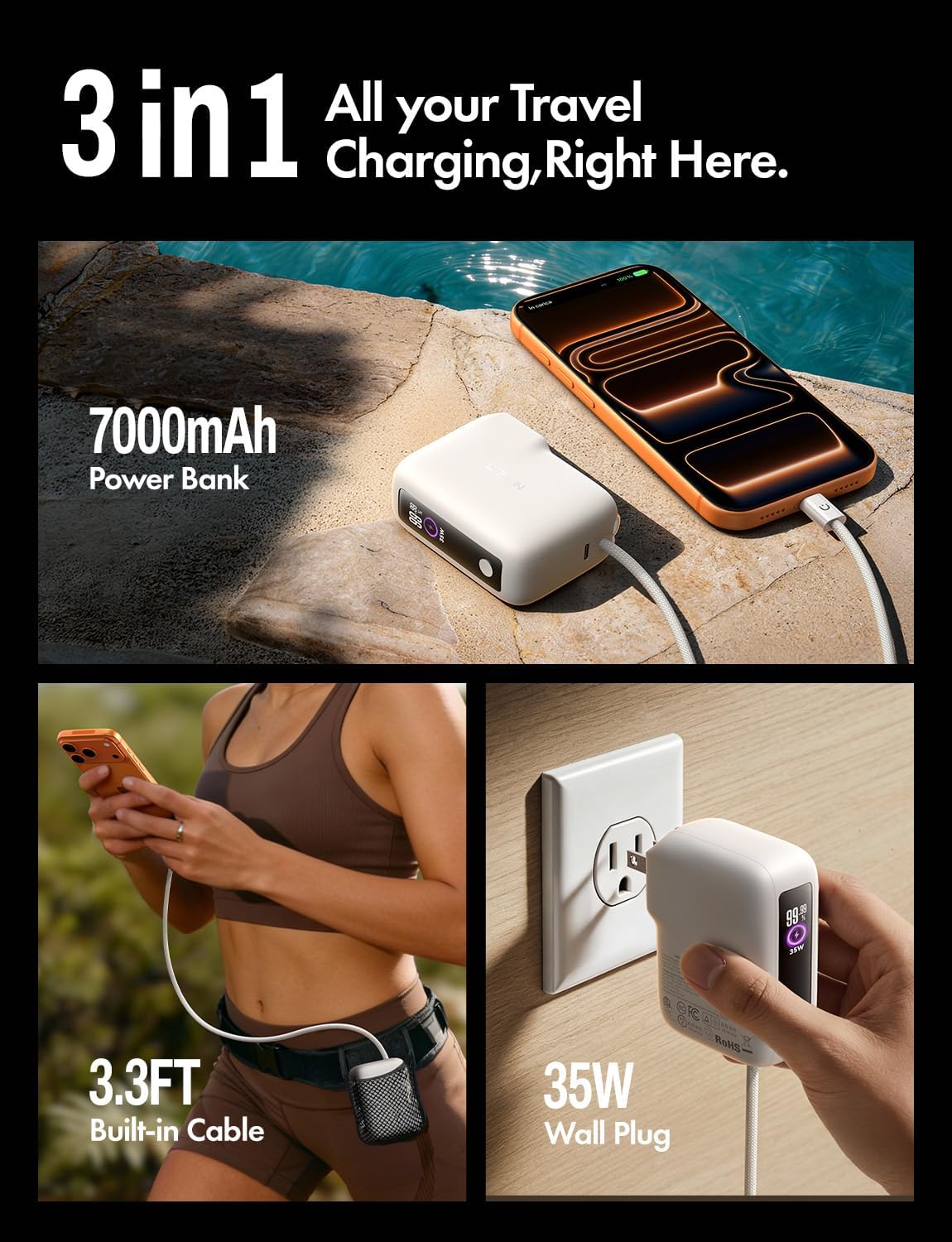 Built In Cable, Built In Wall Plug, Digital Display, Fast Charging, Pocket Size