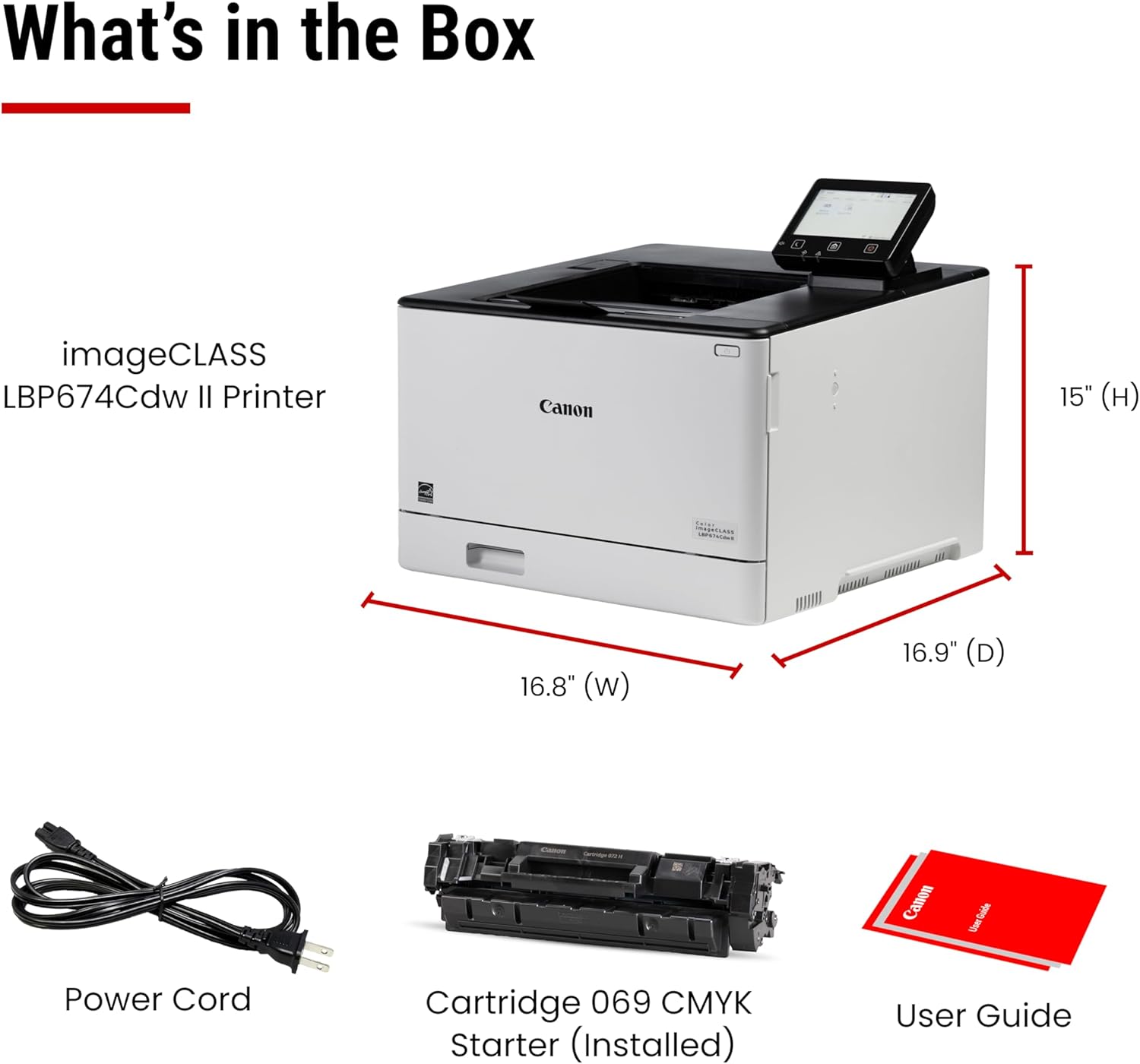 Canon Genuine Toner 069 Starter (CMY: 1,100 / Black: 1,200 yield), Documentation, Power Cord, imageCLASS LBP674Cdw II Printer