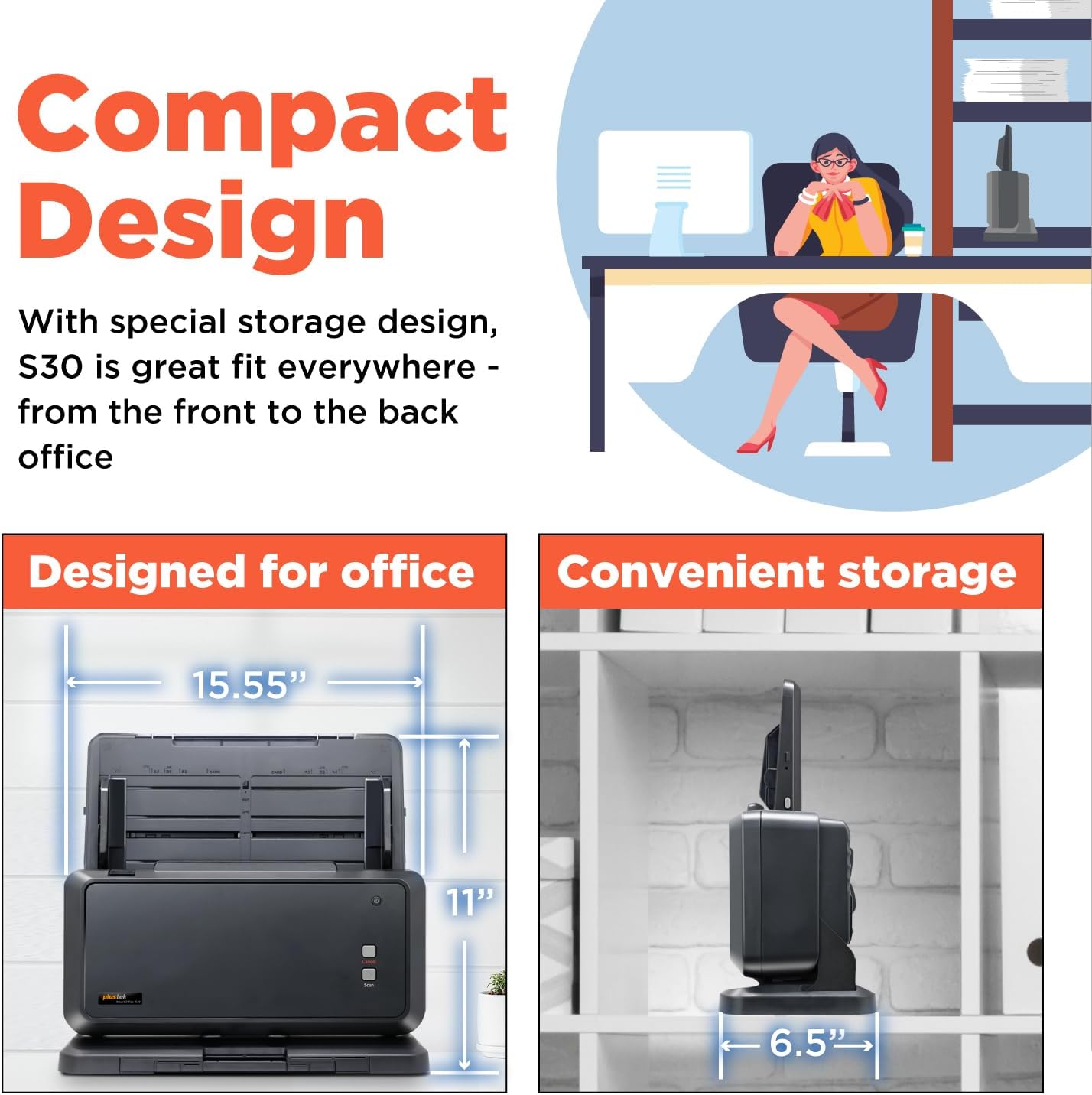 Early comment. This is a true affordable scanner for regular size paper and of critical need, ledger size documents. Have about 3,000 scans in 3 days on it so far. Scans fast and accurate. Pages which are stapled together need to be physically separated after taking out staples. If you don't, multiple pages will run thru. Upside down seems to work. Somehow defaults to MS Edge PDF. Need to figure that out to get it to save directly to Adobe PDF. Tech support at Plustek (Nathan) was excellent. Answered questions which weren't readily apparent or identifiable in owners manual, i.e., "long paper", "continuous scan", etc. Nathan is a credit to Plustek as he knows the product and how to identify answers. Am sufficiently pleased with this unit that I may end up buying a second unit to speed up the scanning process in order to trash paper files in way too many roach and ant infested business file boxes.