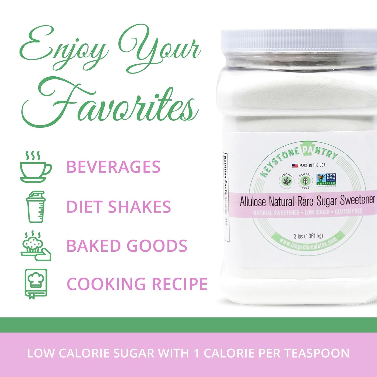 I'm a huge fan of Allulose. This 20lb bulk powder is the best deal on it, especially if you have a sweet tooth like me!To clear up any misconceptions, Allulose is not a sugar alcohol (such as Erythritol or Xylitol), and it's not an artificial sweetener (like Splenda, Equal, Sweet and Low), also it is not toxic to animals (unlike Xylitol which is fatal in even small doses). Allulose is a rare natural sugar. If you've ever eaten a fig, or raisins, you've eaten Allulose, even if in just a minuscule amount, as it occurs naturally in nature, just in very small quantities.Now onto the review. Allulose is great! I eat it all the time. I LOVE caramel, and unlike Sugar Alcohol's, this actually caramelizes!! I make caramelized pecans, with cinnamon and smoked paprika. This allows me to basically eat sugar coated pecans day and night with almost no guilt. This sugar also makes an awesome peanut brittle with the addition of some baking soda.As I often need Powdered Sugar, I take about 4 cups of Allulose, and put it into my handy-dandy blender and about 6 minutes later I have all the powdered sugar I could ask for.You can also turn this into a clear syrup. 4 cups of allulose to one cup of water, makes a great "corn syrup".This tastes almost like sugar, if not quite as sweet. When using it to bake or cook, I cannot tell the difference between Allulose and table sugar.There should not be any gastrointestinal discomfort with this product, because it's just sugar. However, everyone is different. I have eaten pounds of this stuff, and never had any problems with gut pain, or any loose stools.There is one HUGE difference between Allulose and table sugar. Just as humans cannot metabolize Allulose, neither can yeast. So you cannot use Allulose to proof yeast breads. This is a real bummer.Overall this deal on twenty pounds of Allulose is amazing, especially if you are on the Atkins or Keto diets. If you are an avid chef, or love to bake, this sugar will last 3 months at least. If you cook less often, this could easily last at least a year. I give this product a strong BUY rating.Give this product a try, and indulge in no calorie sweetness!