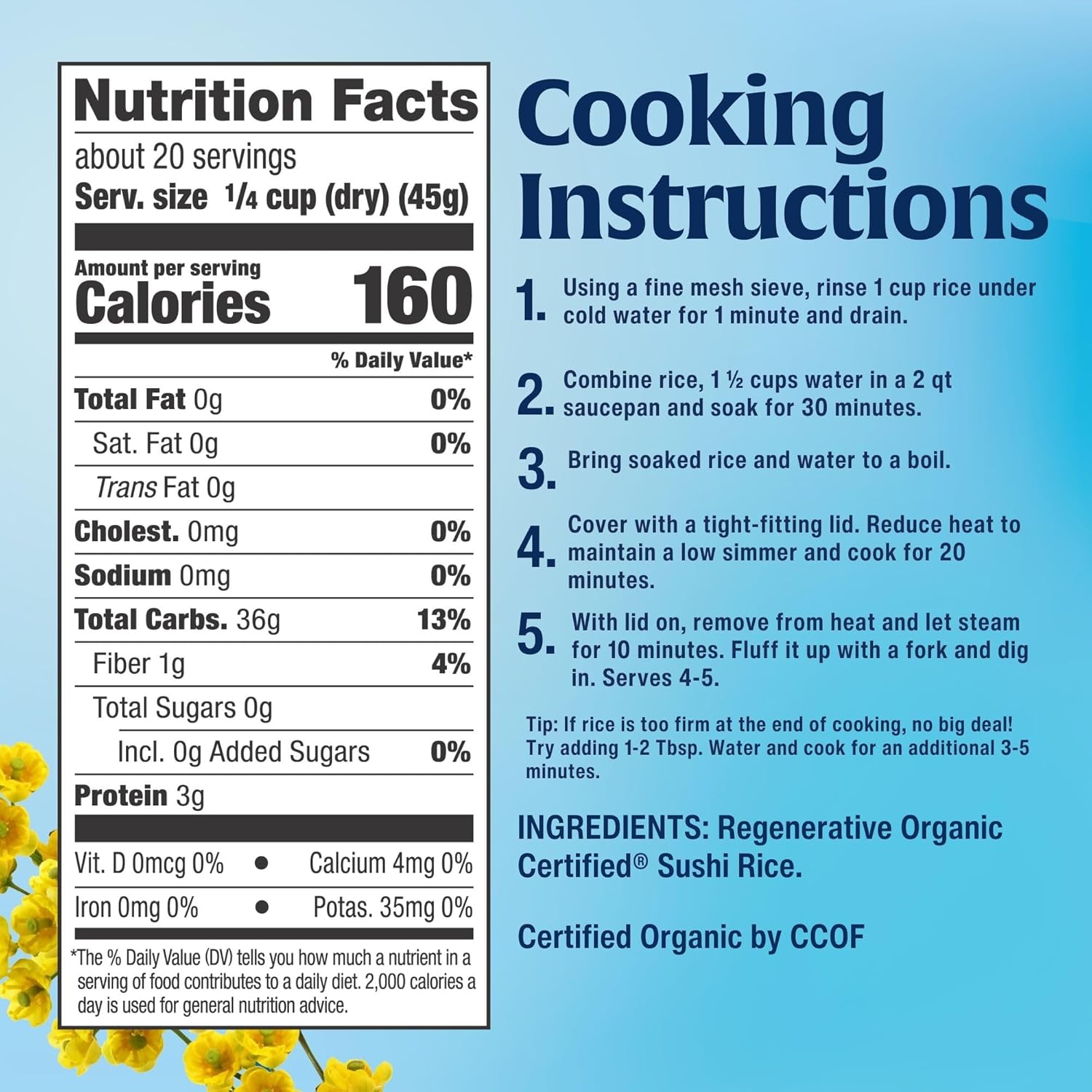 We've tried most of the Lundberg Rice.Our favorites are the Jasmine and the Long Grain.We also like the Basmati but I confess I wish it were a longer grain and a bit more fragrant. I still choose it for being an American brand and because the rice is always so clean.There is ONE THING I don't like about Lundberg Rice: the bag. It is overcomplicated and it sucks. It was not meant for people who want a nice user experience of measuring the rice out of the bag, and the opening is constructed for reuse, not for pouring all the rice out into another container. If you want to make your life more easy: cut the whole top of the bag off and pour the rice into an airtight container. It's a shame to waste the reusable velcro opening and I suspect the construction of the bag contributes to the high price.This makes REALLY GOOD SUSHI RICE. Making sushi rice is a different experience than making regular rice so if you are new to it I recommend watching a video and using a recipe until you get the hang of cooking, spreading it out, and seasoning the rice.Net: this is an excellent product. It's a bit expensive so I would only recommend it to smaller households who eat sparingly. I would not recommend this brand to families that eat rice for every meal simply because of the price.