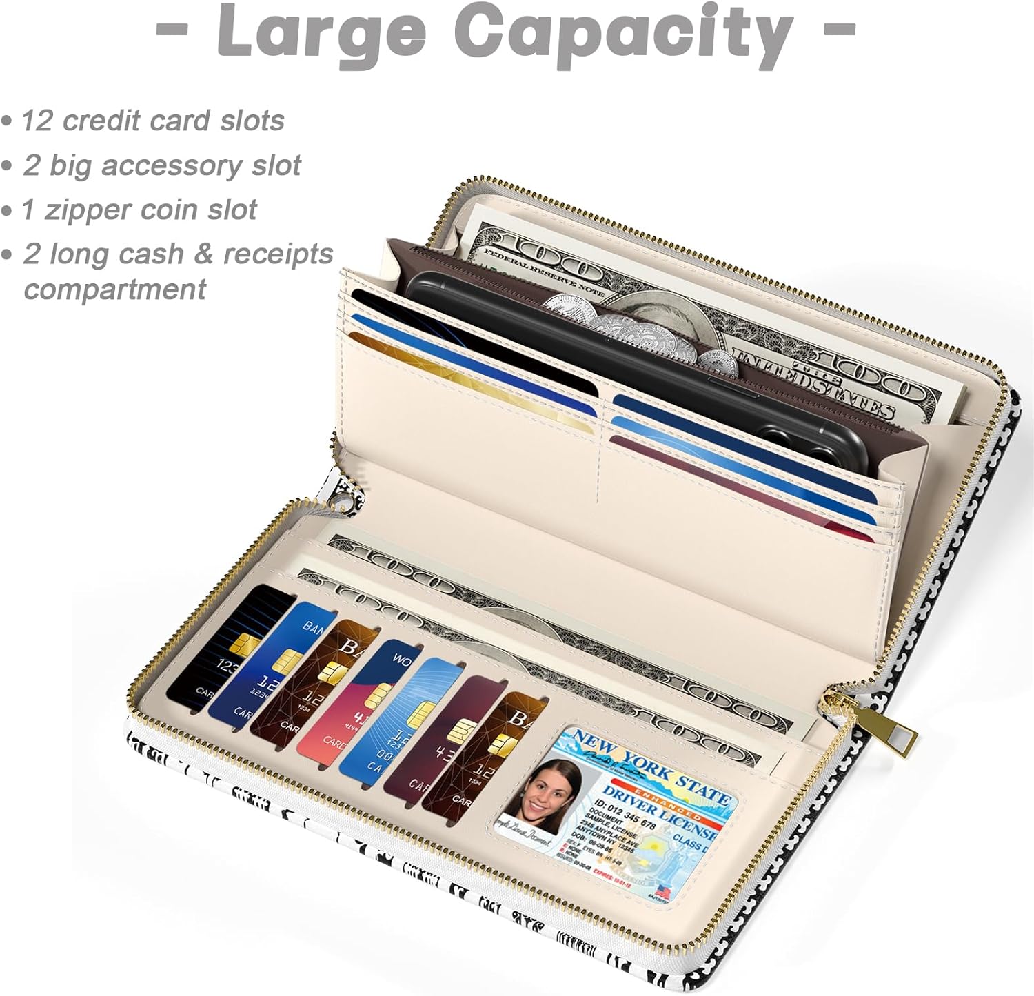 Nice wallet with a pretty cat print all the way around. Plenty of pockets for credit cards and cash and other small items. Zipper works well and the carry handle on the wristlet appears to be able to hold up over time with repeated use.