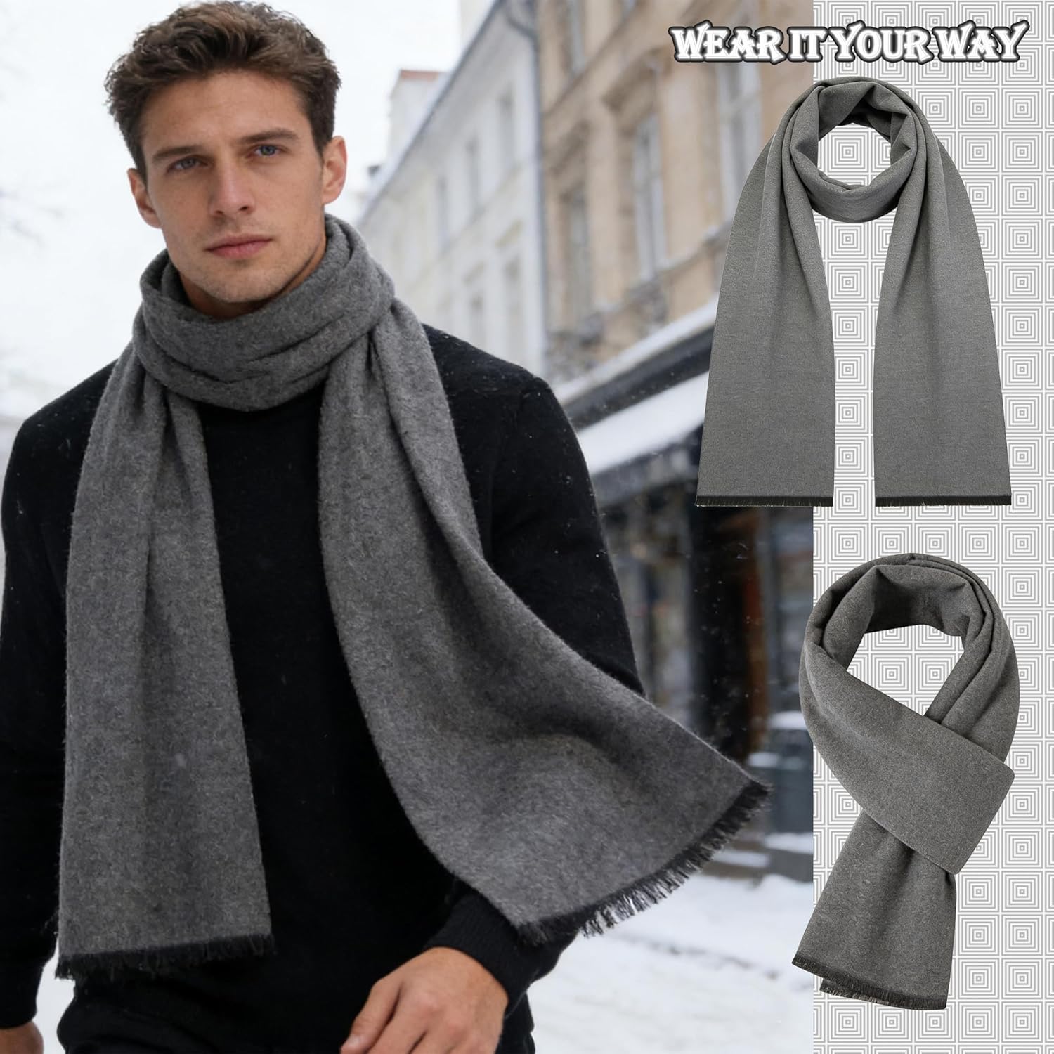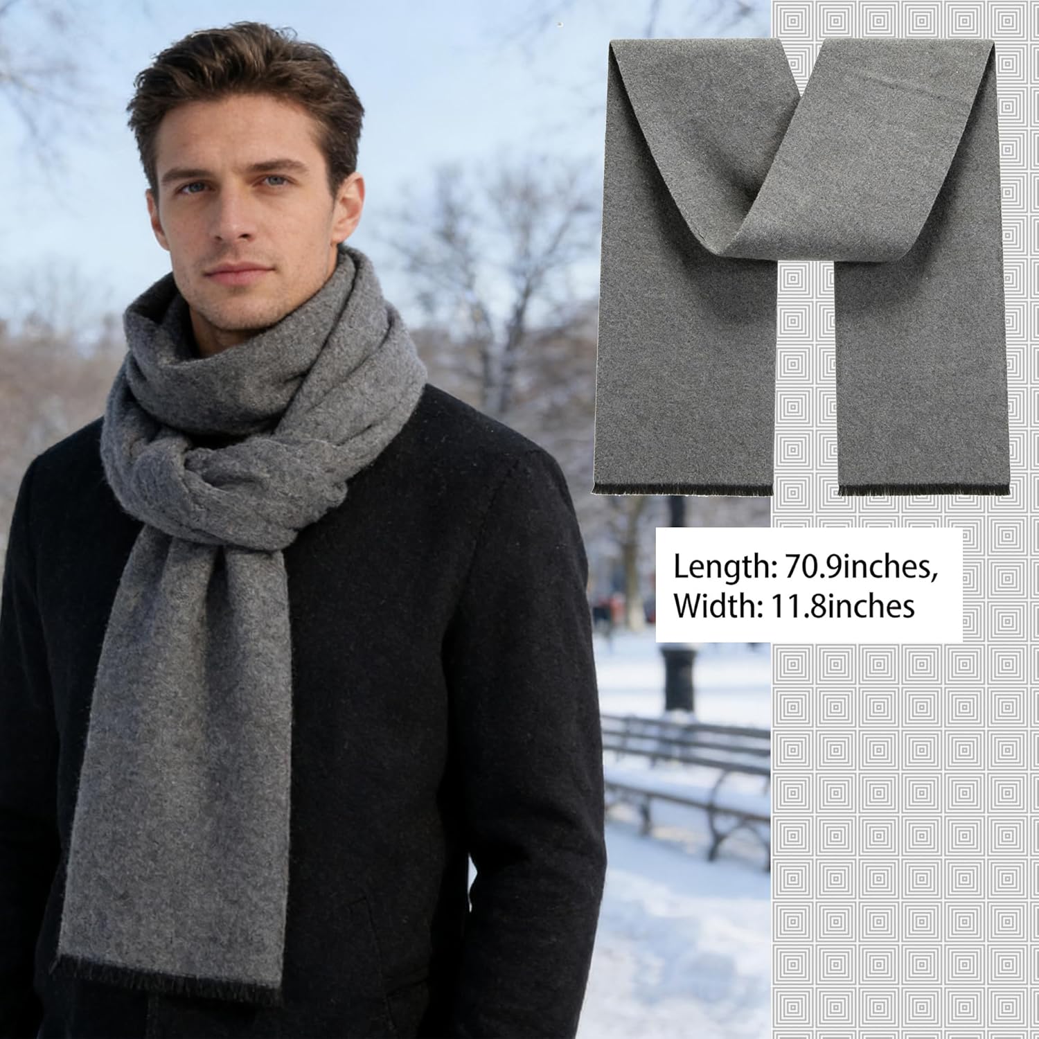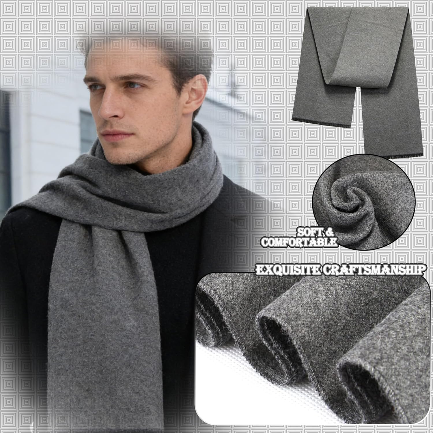 This scarf has a soft cashmere feel and is very comfortable to wear in cold weather. The material quality feels smooth and warm without being heavy, and the fabric sits nicely against the skin. The size offers great coverage and the fit works well for different wrapping styles. I like the classic look and the clean color options, which add simple beauty to both casual and dressier outfits. It is easy to use, provides reliable warmth, and feels durable for everyday wear. Overall, it offers solid functionality and good value for the money.