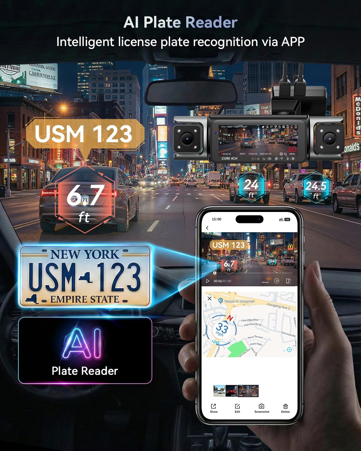 360 Degree, GPS, IMX675 STARVIS 2, Voice Control, App Control PLEASE NOTE: The APP is completely FREE TO USE. Built-In Display, Built-In Supercapacitor, Loop Recording, Motion Sensing, 5G Wifi, G-Sensor, Night Verion, Parking Mode