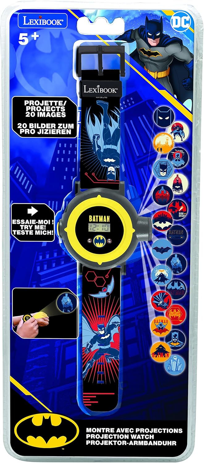 My 6 year old son loves the watch it shows the date month and day and the time projections are clear on my white walls Very Age Appropriate great price