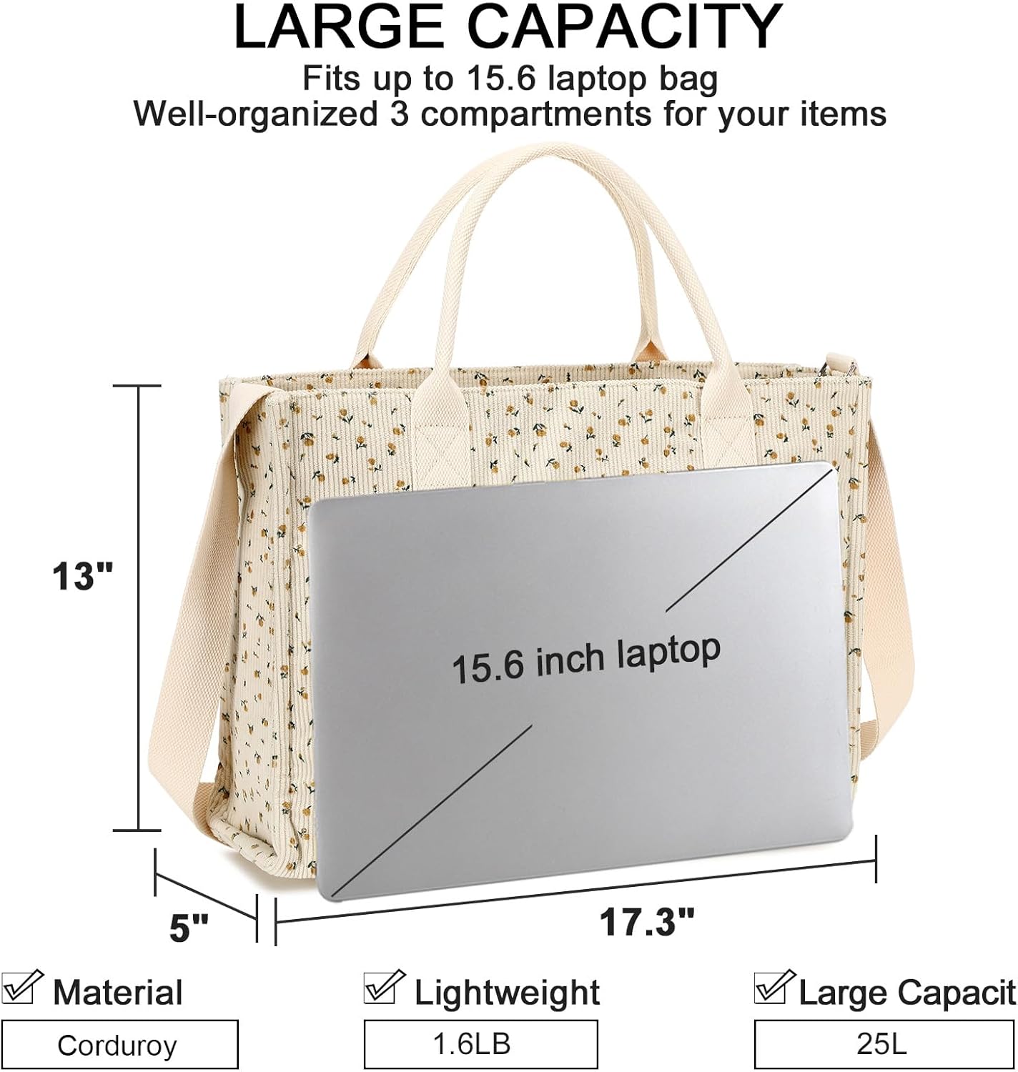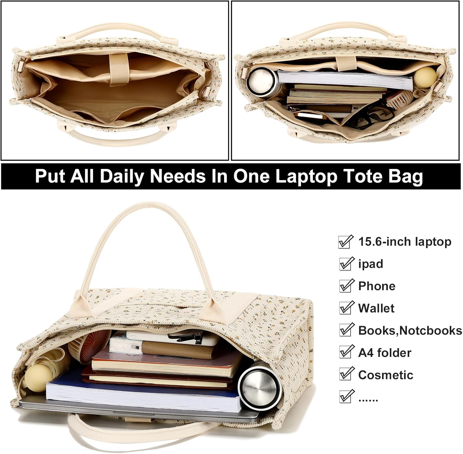 This laptop tote has a stylish design with quality material and is sturdy enough for everyday use. The inside is very roomy with two slip pockets to help keep smaller items organized, plus two main sides so everything has its place. One side is padded for the computer, has a secure Velcro strap, and still leaves plenty of space for a charger, notebook, and extras. The removable shoulder strap is a nice bonus for hands-free carry when commuting or traveling.